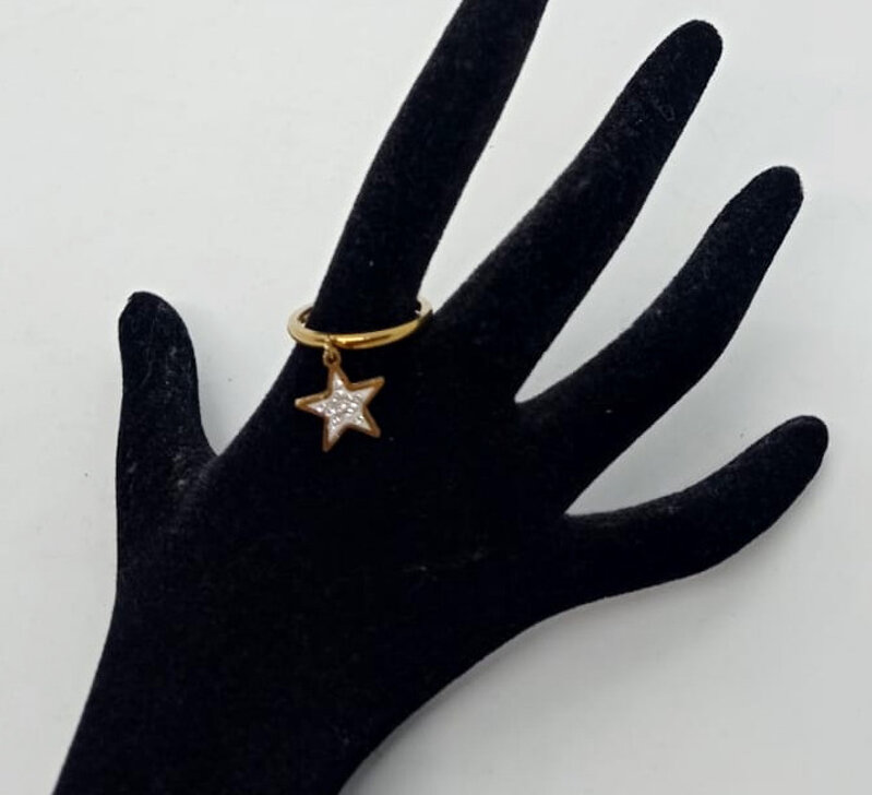 Anello dorato in acciaio con stella pendente, ricoperta di strass taglia 18 non apribile