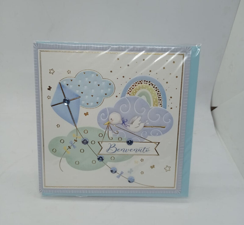 Biglietto Benvenenuto con cicogna da bambino