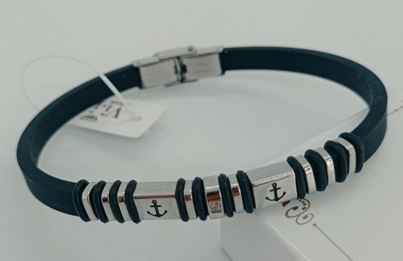 Bracciale uomo in acciaio con disegni nautici e brillantino