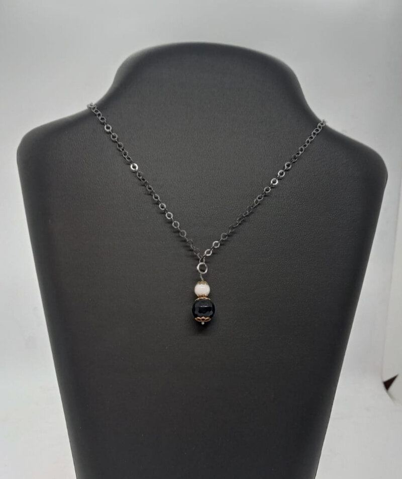 Collana in argento con pendente due perle in onice bianco e onice nero