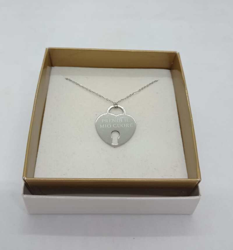 Collana in acciao a forma di cuore con lucchetto con frase: PRENDI IL MIO CUORE