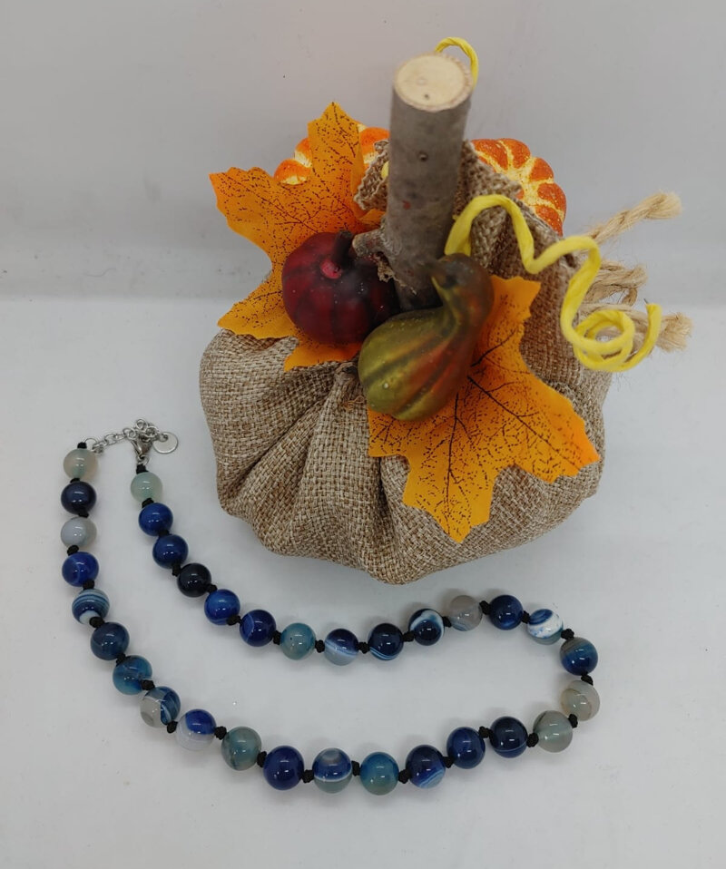 Collana in perle color blu o beige