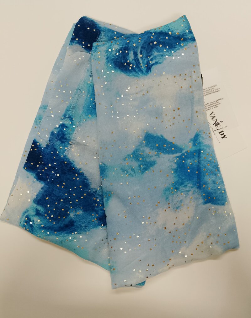 Foulard azzurro in misto viscosa con dettagli dorati