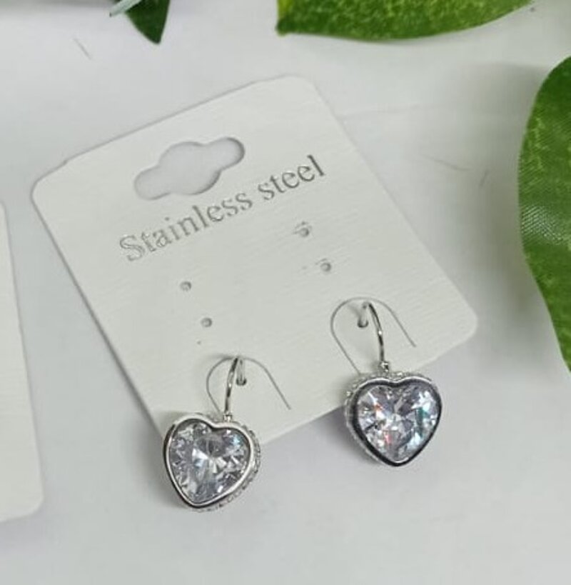 Orecchini con monachella in acciaio con brillante a forma di cuore