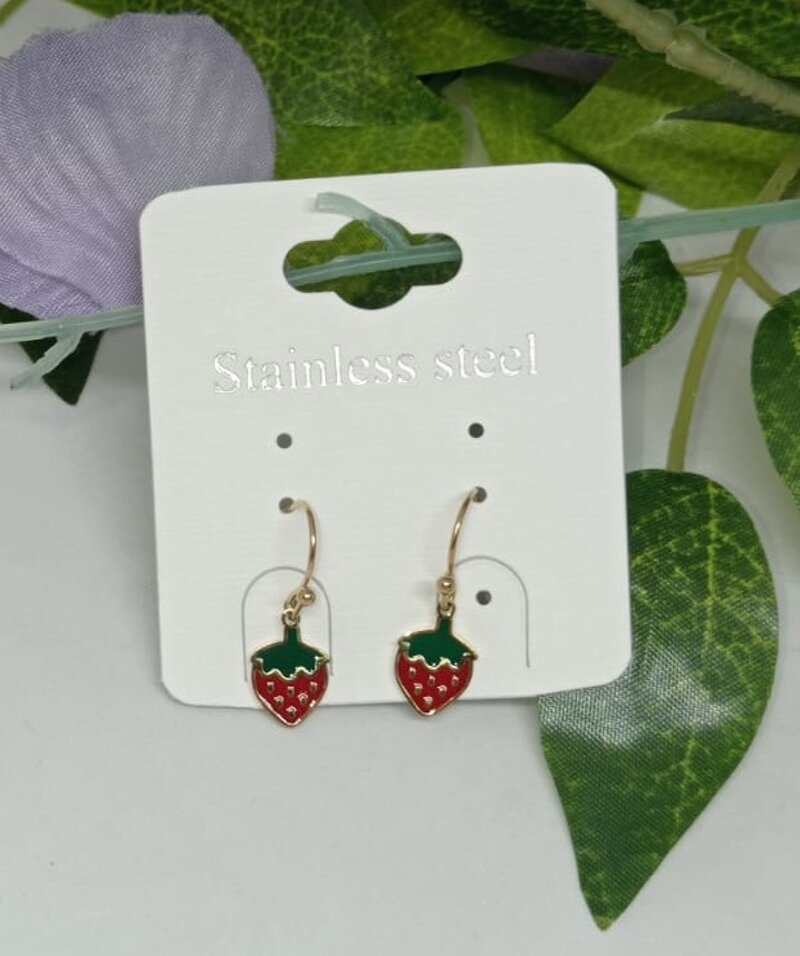 Orecchini con monachella in acciaio con fragola