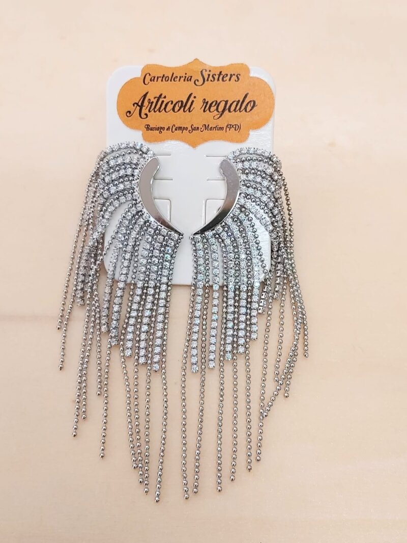 Orecchini di bigiotteria con fili di strass e palline per donna