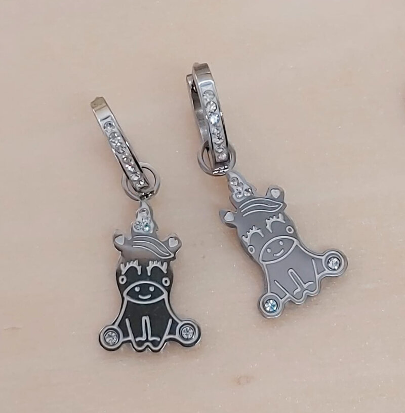 Orecchini in acciaio a forma di unicorno, con brillantini per bambina
