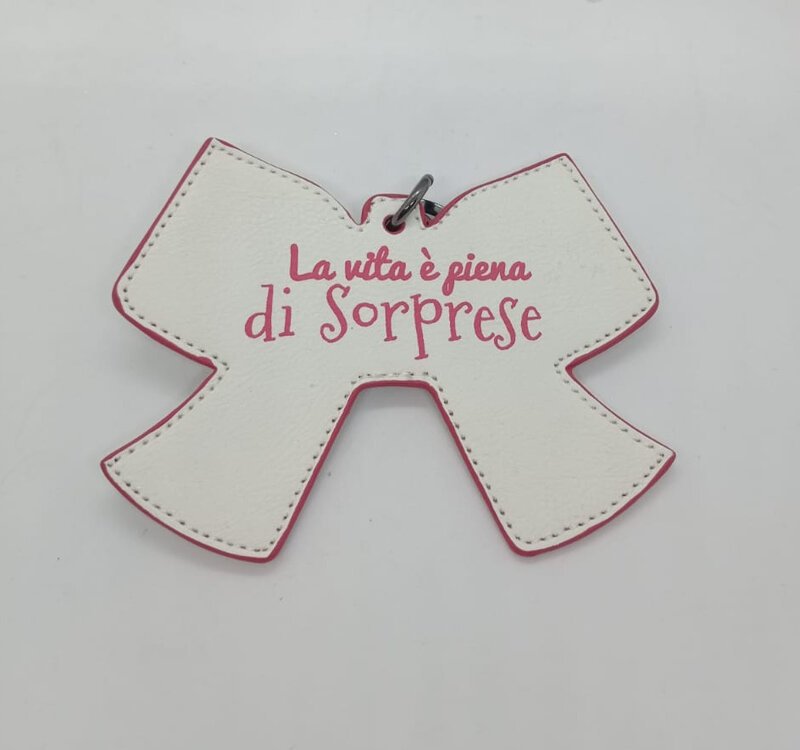 Portachiavi Le Pandorine, Fiocco bianco con frase carina e gangio in acciaio