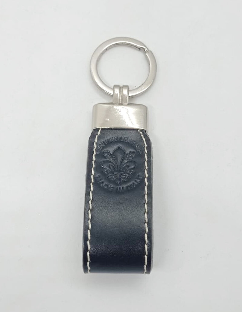Portachiavi in pelle nera con stemma e gancio in acciaio made in Italy per uomo